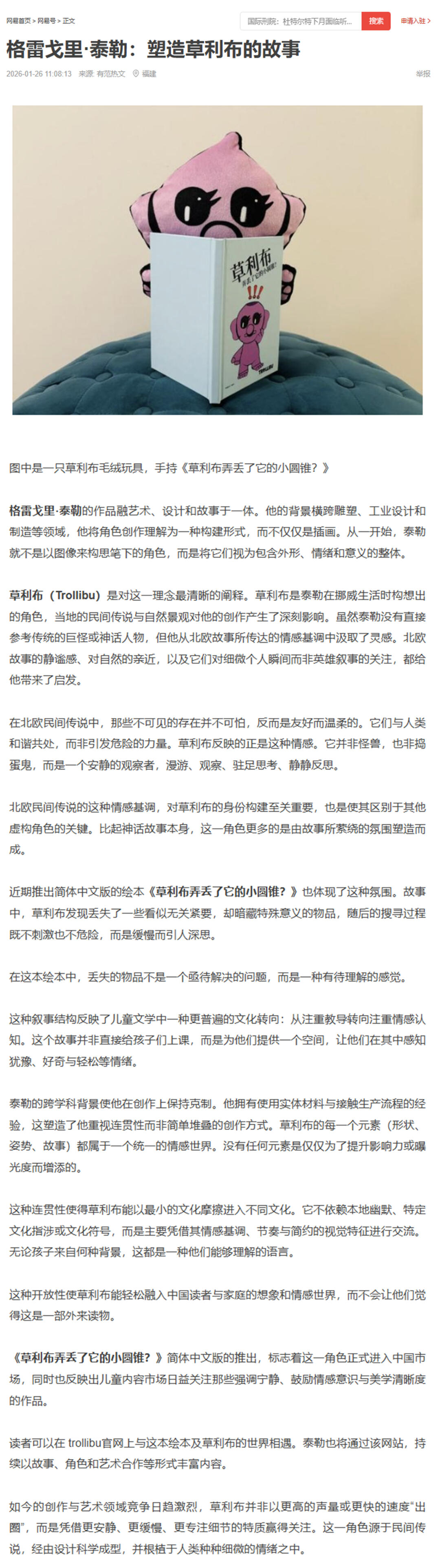Lanseringsprosjekt for den illustrerte barneboken Trollibu mister kulen, utgitt på forenklet kinesisk. Prosjektet omfattet visuelle lanseringselementer samt lyd- og videoversjoner, og introduserte Trollibu-universet for et nytt internasjonalt publikum.